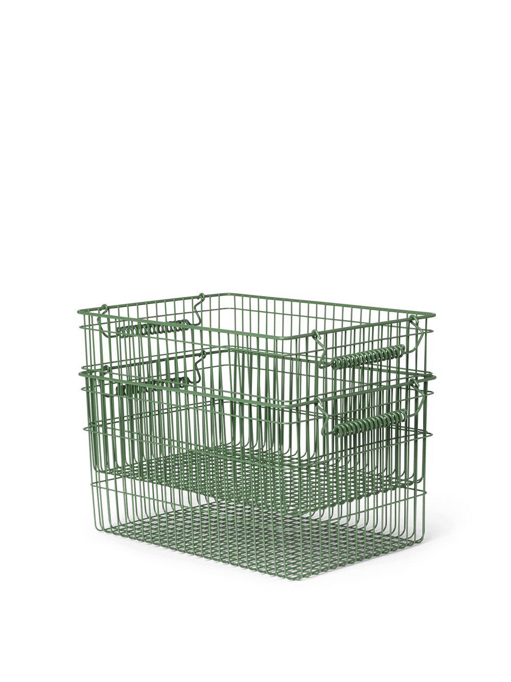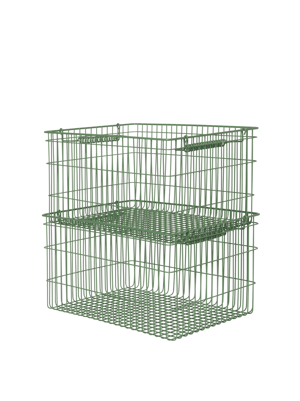 Den här stapelbara nätkorgen är inspirerad av det spanska ordet ”Cala”, som betyder ”bäck”, och är tillverkad av pulverlackerat järn. Den fungerar som en funktionell förvaringslösning och passar i många olika miljöer, oavsett om den används på kontoret för att organisera material, i badrummet för toalettartiklar eller i barnrummet för leksaker. Den kombinerar mångsidighet med en elegant touch och dess unika egenskap är det distinkta spiralformade metallhandtaget, som tillför ett dekorativt element samtidigt som det ger ett bekvämt grepp.